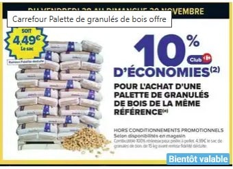 Pellets en baisse chez Carrefour : 10 % de remise et un sac affiché à 4,49 € jusqu’au 1er décembre